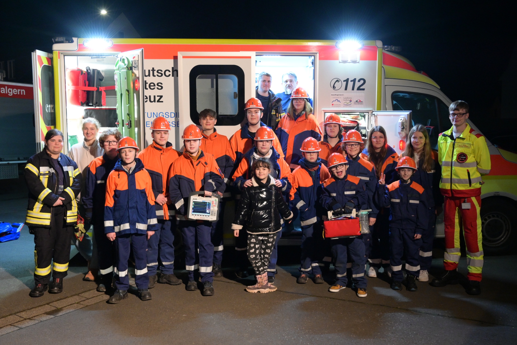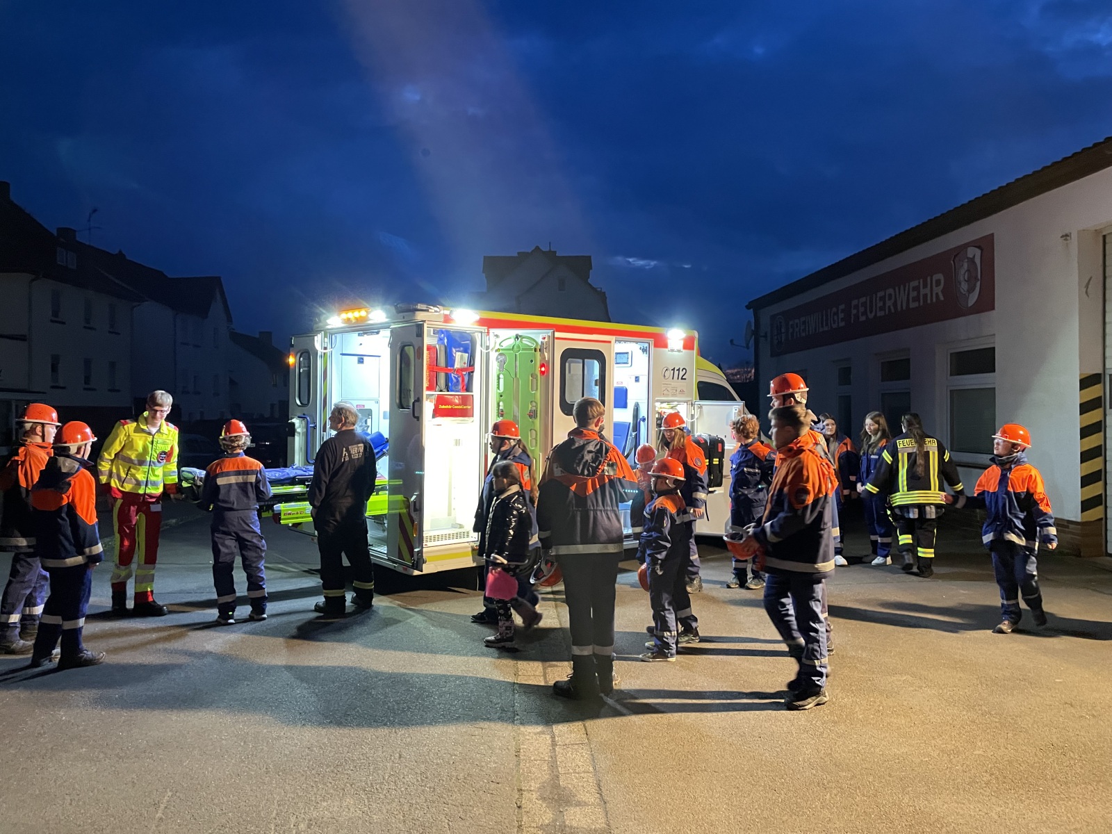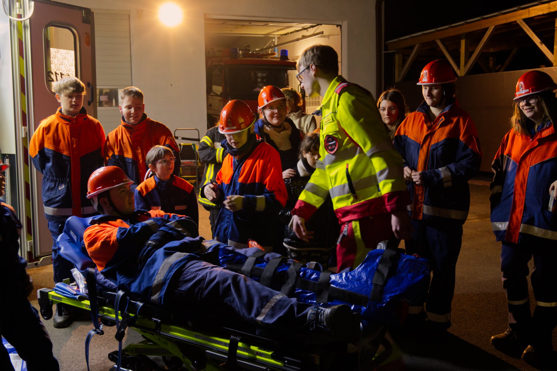 Heute stand ein neues Thema auf dem Dienstplan der Jugendfeuerwehr: „Der Rettungswagen (RTW)“. Durch den Rettungsdienst Mittelhessen bekamen wir die Gelegenheit, einen RTW zu besichtigen. Die Vorführung fand in Niederweimar statt und war für alle eine lehrreiche und spannende Erfahrung. Zu Beginn wurde die umfangreiche Beladung des RTWs vorgestellt. Von lebensrettenden Geräten bis hin zum bekannten medizinischen Verbandsmaterial wurde alles vorgestellt. Anschließend konnte ein Jugendlicher hautnah erleben, wie ein EKG an ihm geschrieben wurde. Die passende Erklärung der Sinuskurve fand im diesem Zuge auch statt. Ein weiteres Highlight war die Demonstration der Vakuumschiene. Ein anderer Jugendlicher hatte sich freiwillig zur Verfügung gestellt, um diese am eigenen Körper auszuprobieren. Zum Abschluss erhielten alle eine ausführliche Führung durch das Innere des RTWs. Von der Funktionsweise der verschiedenen medizinischen Geräte bis hin zur Organisation des Innenraums wurde alles erklärt.